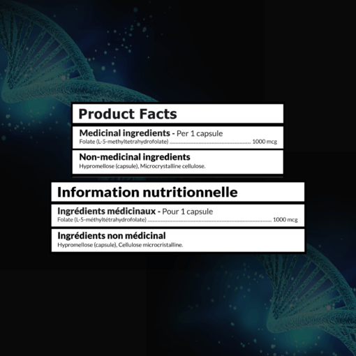 Ingredients per serving: 1,000mcg Folate [(6S)-5-Methyltetrahydrofolic Acid, Glucosamine Salt (Quatrefolic®)]
