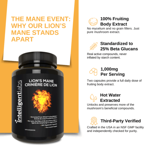 Our Lion’s Mane supplement is manufactured at a NSF GMP-certified facility in the United States.