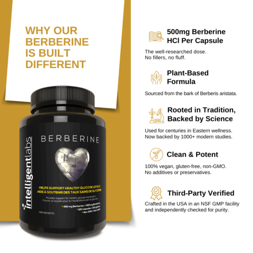 Berberine helps lower blood glucose levels, which improves insulin sensitivity and reduces inflammation.