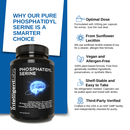Most Phosphatidylserine products are made with soy, which is highly allergenic and often genetically modified.