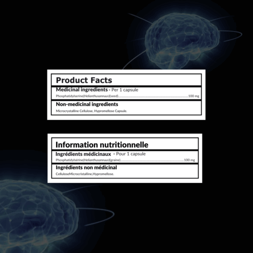 Ingredients per serving: 100mg Phosphatidylserine (From sunflower lecithin) (Soy-free)