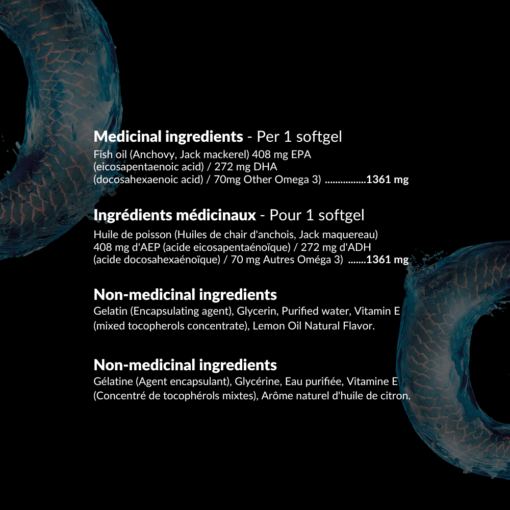 Other ingredients: Highly Refined Omega-3 Fish Oil, Capsule (gelatin, glycerin, purified water and natural lemon flavoring), and Antioxidant (mixed natural tocopherols). Contains fish.