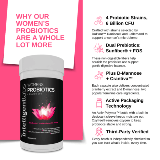 Intelligent Labs Women’s Probiotics also have 4 different types of probiotics: